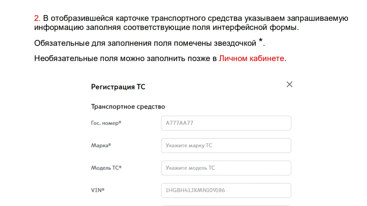 данных и сопровождаем регистрацию транспортного средства до подтверждения