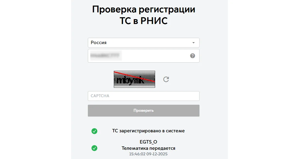 Для выполнения требований недостаточно просто установить GPS/ГЛОНАСС-трекер. Оборудование должно корректно передавать данные именно в РНИС, а автомобиль должен отображаться в системе как подключенный и активный.